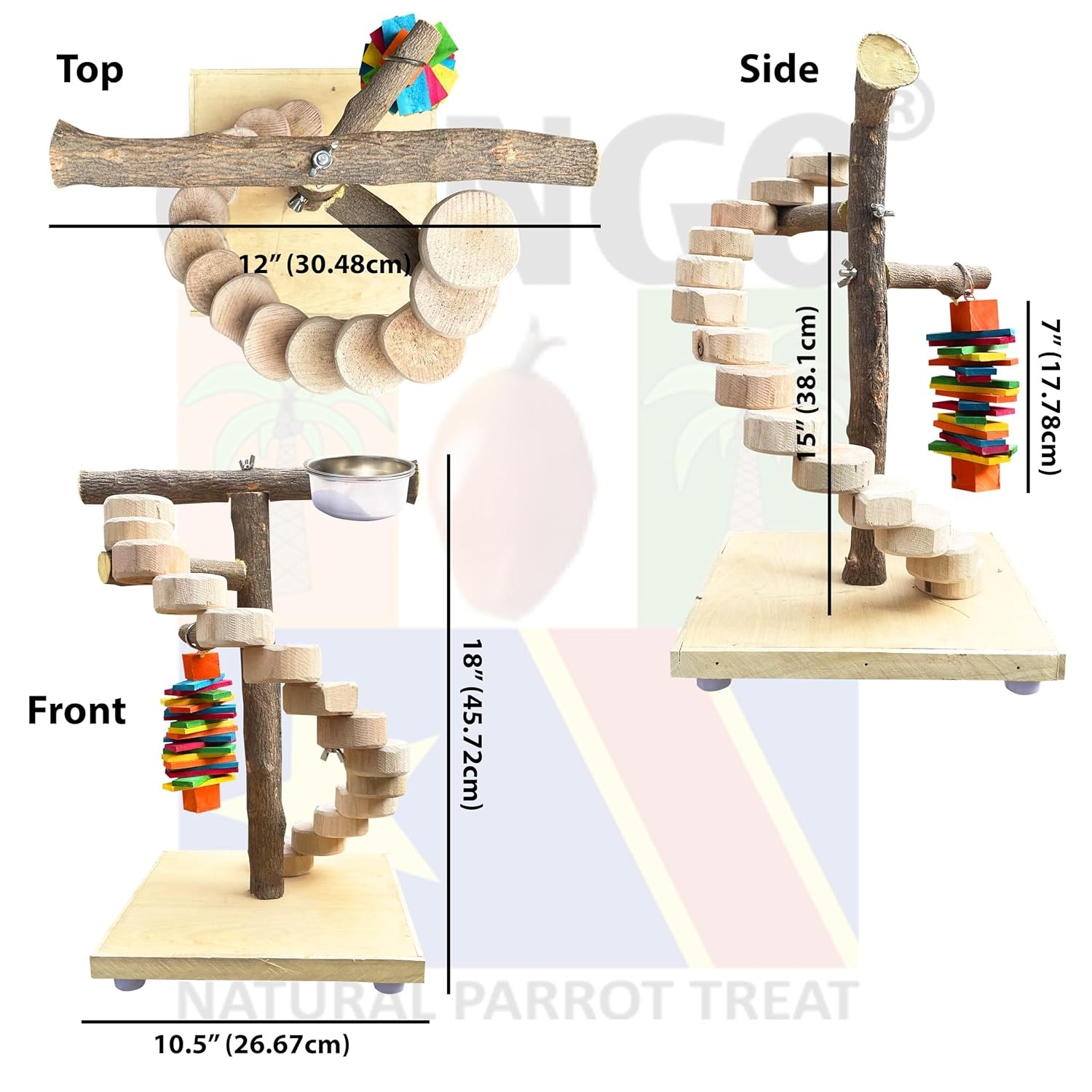 • The inclusion of a round step ladder adds an extra dimension to your bird’s playtime. Birds love to climb and explore different levels, and the ladder provides an engaging way for them to exercise their natural instincts.